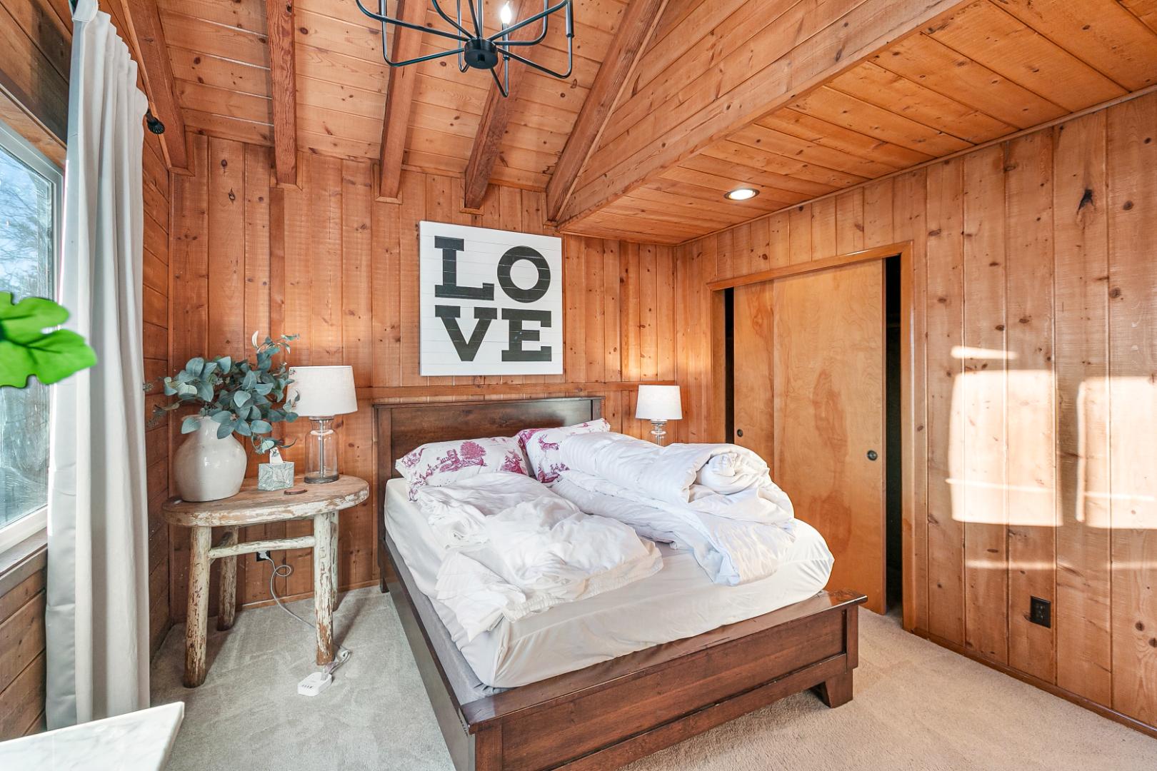 Beautiful 3-bedroom, 2-bathroom home, blending rustic charm with modern comfort. Spacious living area with natural wood walls and a ceiling, warm and inviting atmosphere. Wood-burning fireplace adds the perfect touch for cozy mountain evenings.