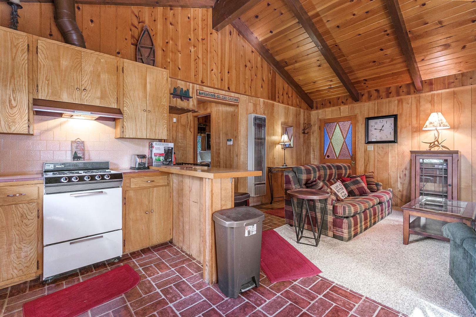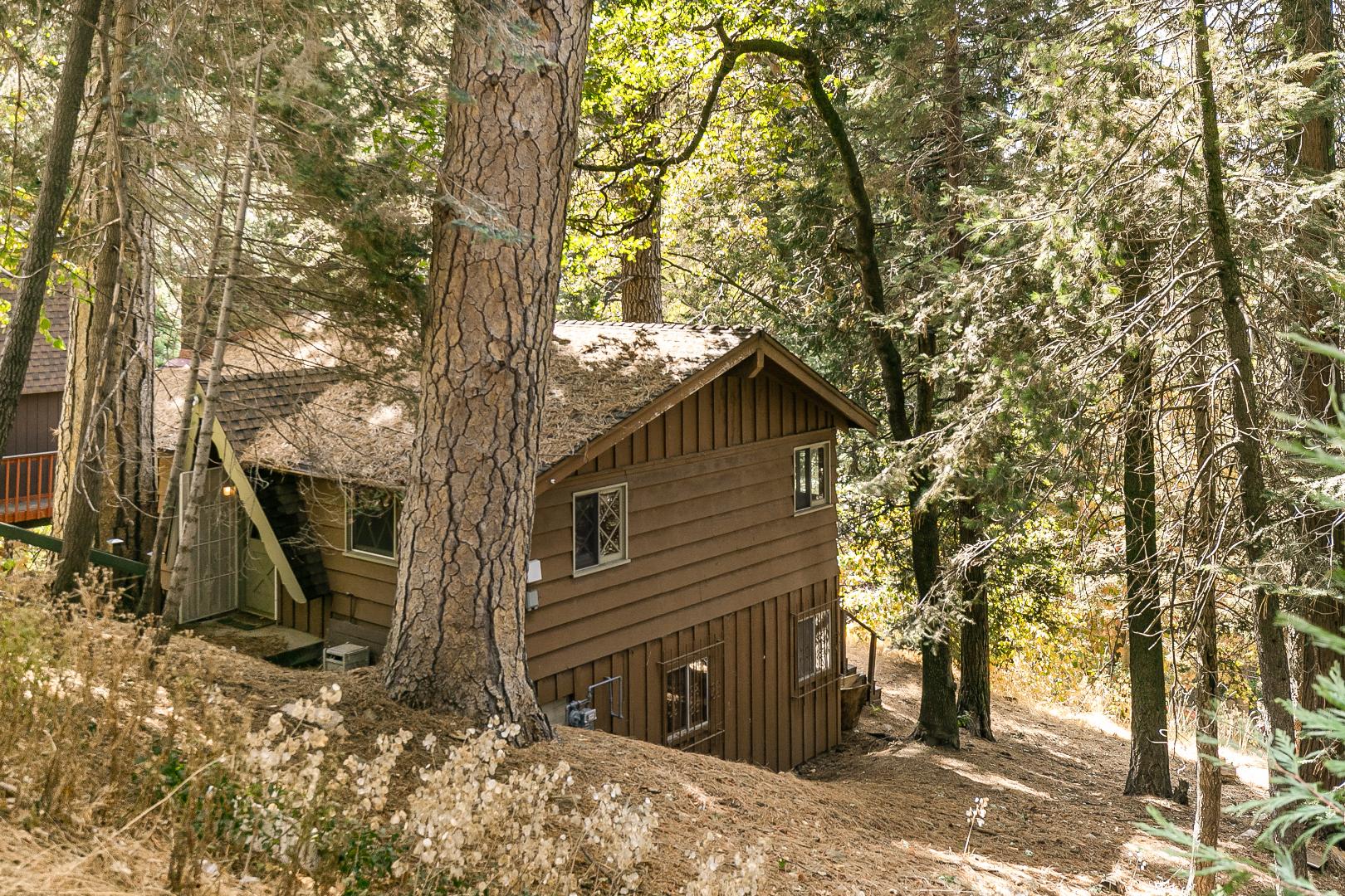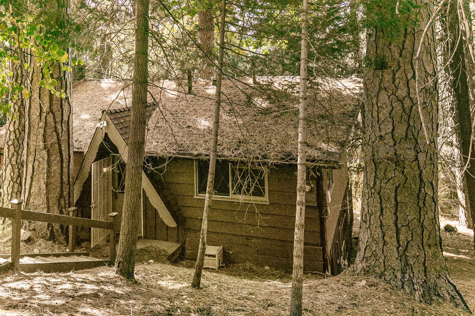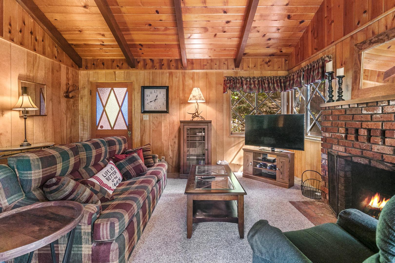 Nestled among the trees, this charming 3 bedroom, 1 bathroom rustic cabin offers the perfect blend of seclusion and comfort. Located in teh Arrowhead Villas, ths home has a cozy wood-burning fireplace, the cabin’s warm and inviting living space, ideal for those chilly mountain nights. The family room comes complete with a foosball table for entertainment. Step out onto the deck at the back of the home to enjoy the peaceful forest surroundings—perfect for relaxing or outdoor dining.
