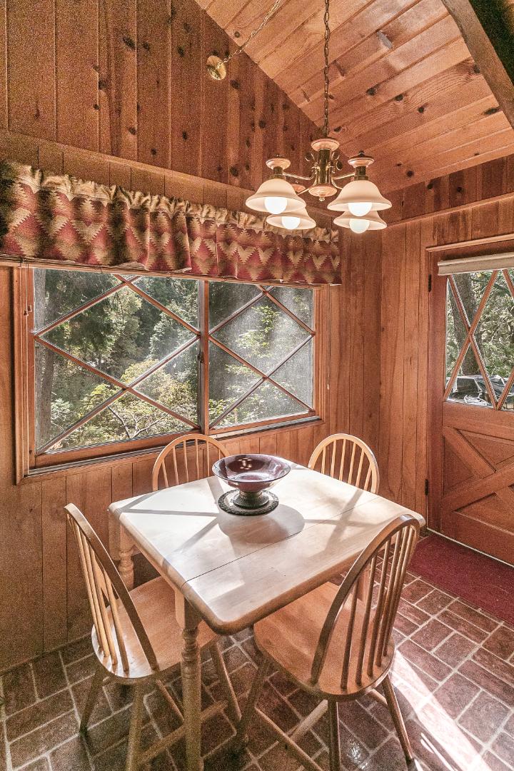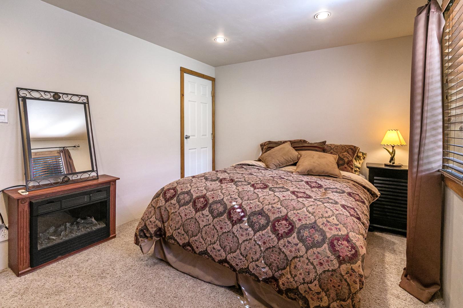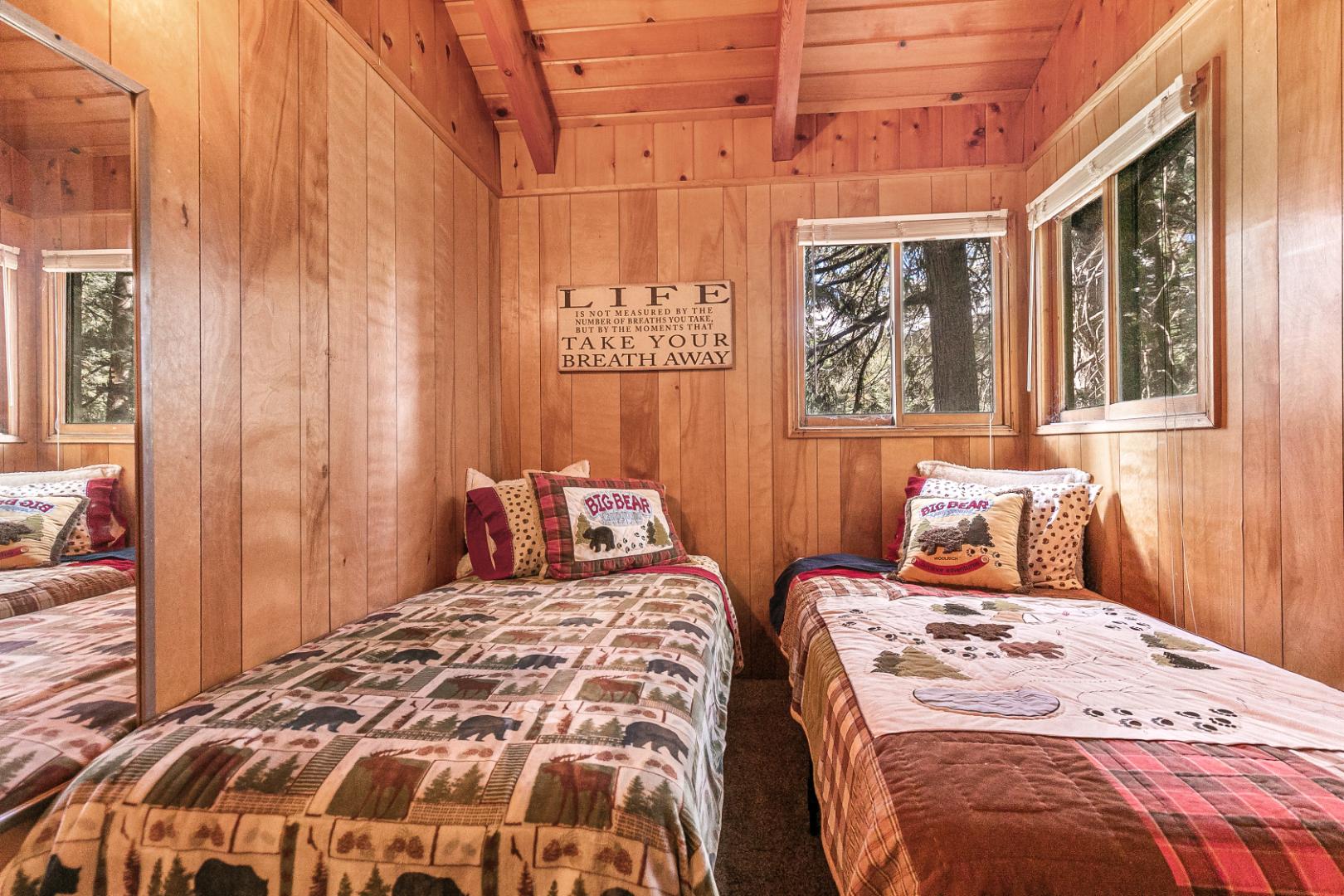 Nestled among the trees, this charming 3 bedroom, 1 bathroom rustic cabin offers the perfect blend of seclusion and comfort. Located in teh Arrowhead Villas, ths home has a cozy wood-burning fireplace, the cabin’s warm and inviting living space, ideal for those chilly mountain nights. The family room comes complete with a foosball table for entertainment. Step out onto the deck at the back of the home to enjoy the peaceful forest surroundings—perfect for relaxing or outdoor dining.