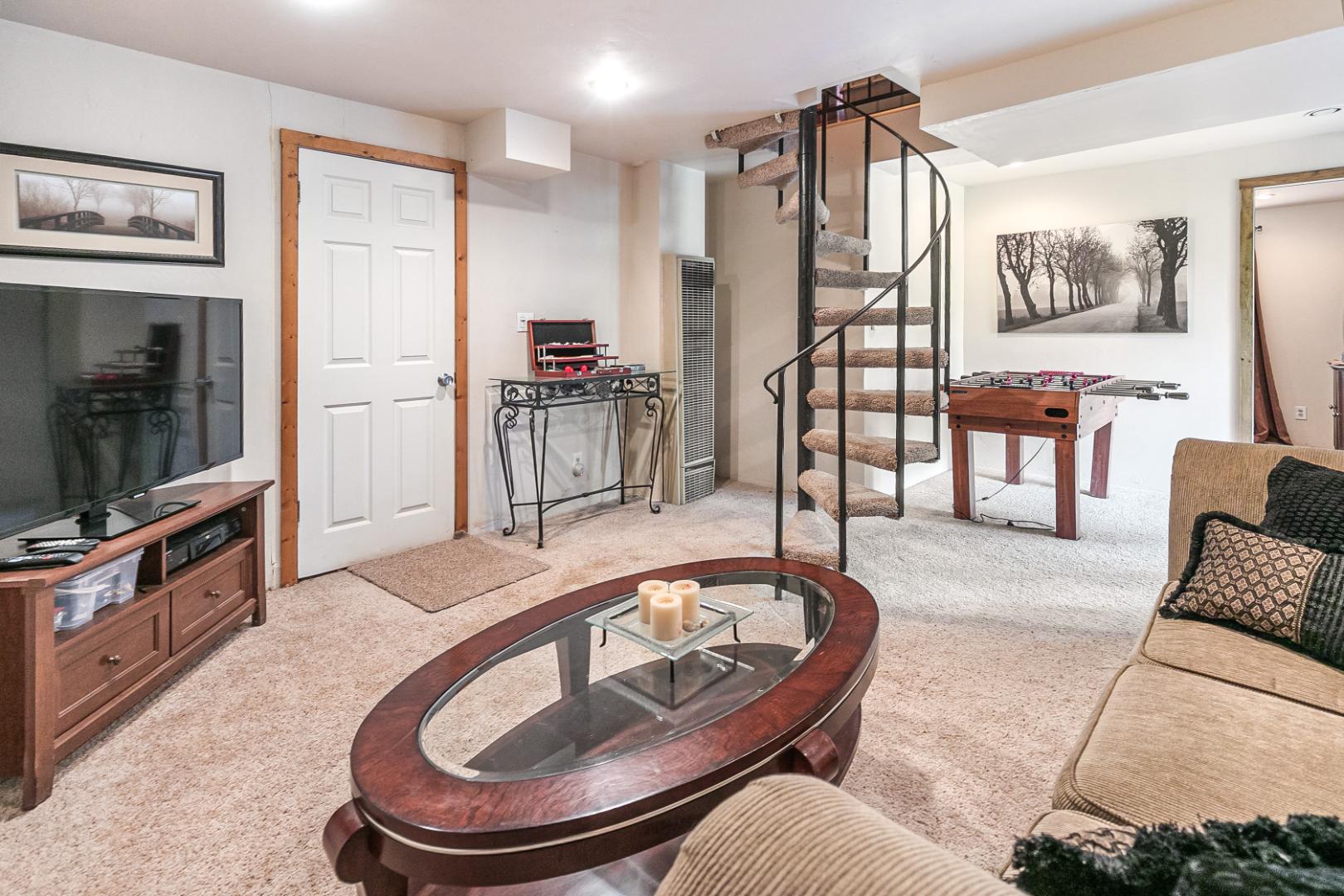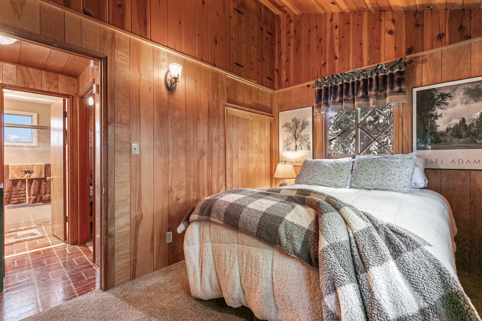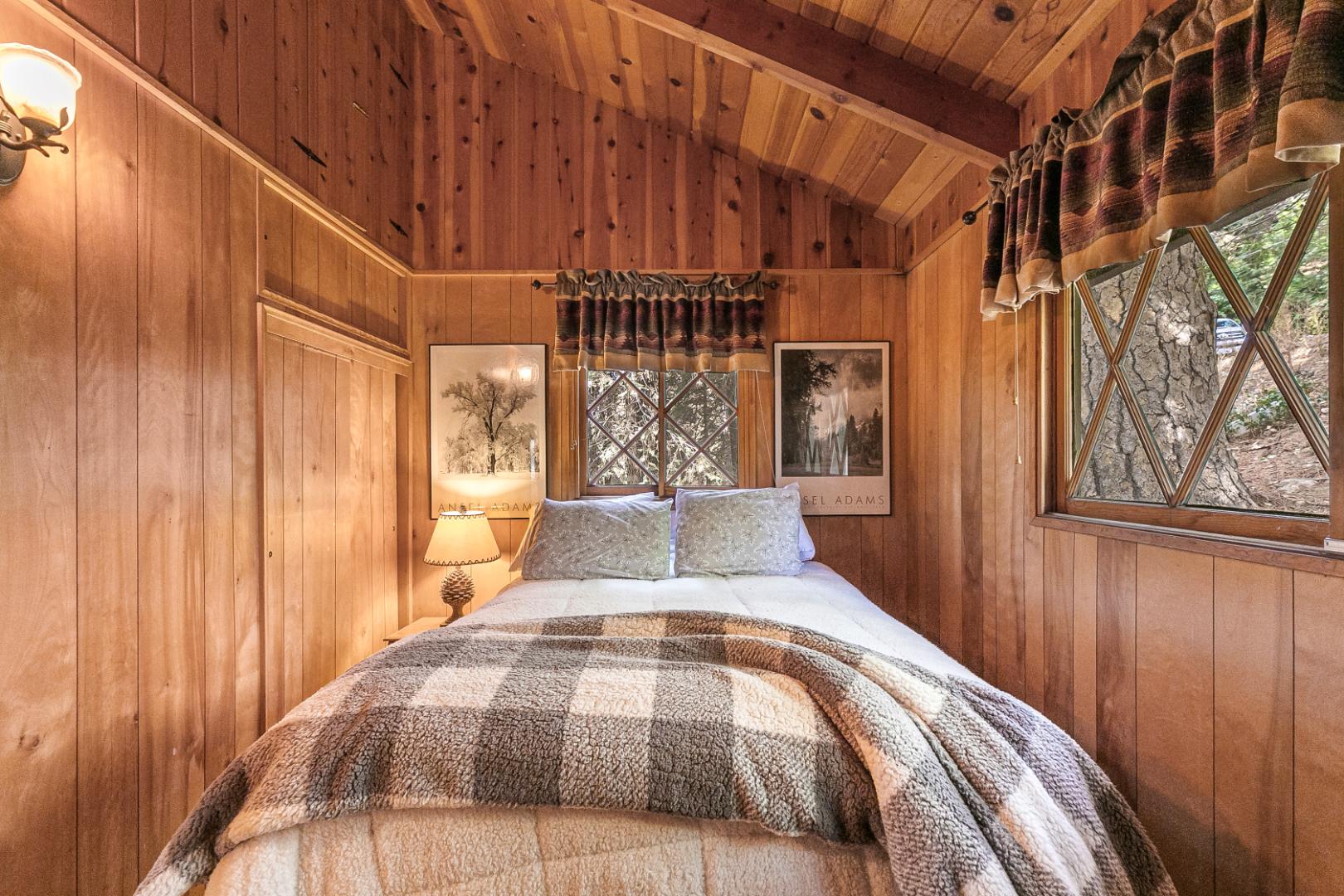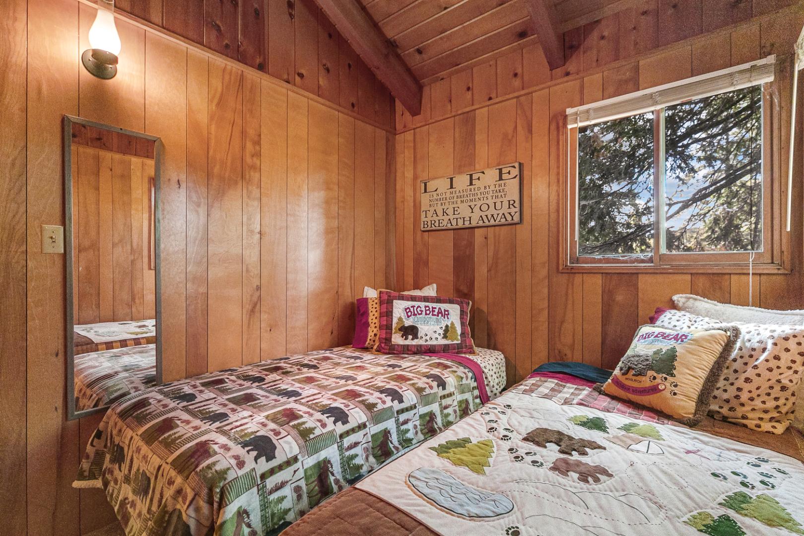Nestled among the trees, this charming 3 bedroom, 1 bathroom rustic cabin offers the perfect blend of seclusion and comfort. Located in teh Arrowhead Villas, ths home has a cozy wood-burning fireplace, the cabin’s warm and inviting living space, ideal for those chilly mountain nights. The family room comes complete with a foosball table for entertainment. Step out onto the deck at the back of the home to enjoy the peaceful forest surroundings—perfect for relaxing or outdoor dining.