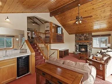 Lake views. Discover comfortable living at 262 Delle Dr, a spacious 3-bedroom, 3-bathroom single-family home in Crestline. This 1,822 sq ft residence features vaulted ceilings, several decks overlooking Lake Gregory, and modern conveniences including a washer, dryer, dishwasher, microwave, and fireplace. Enjoy the comfort of air conditioning, ceiling fans, and carpeted floors, complemented by a carport for 3 cars. The home offers ample storage space and access to building amenities such as laundry facilities, decks, a workshop, and a smoke-free environment. Lease terms include a 1-year lease with tenants responsible for all utilities, providing flexibility and control over your living expenses. Experience a welcoming and well-equipped home designed for your lifestyle, close to town and easy commuter location.